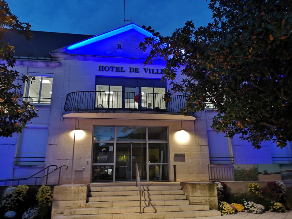 A cette occasion l’Hôtel de ville s’est paré de bleu à la nuit tombée.