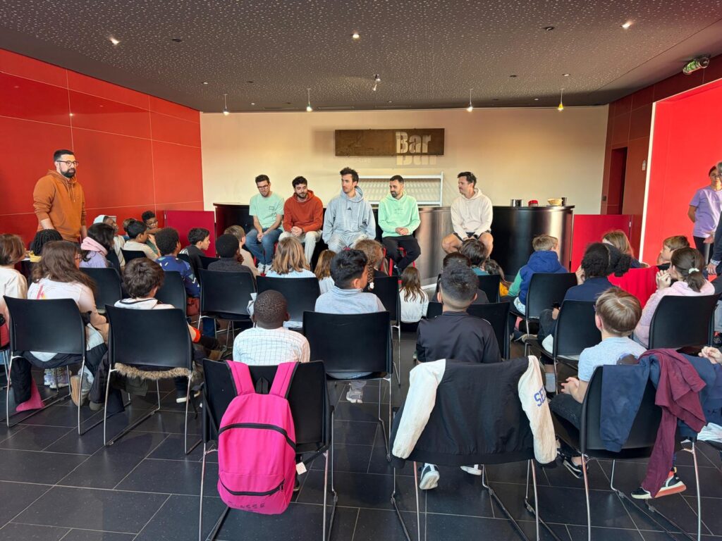 Pendant près d’une heure, les chanteurs et musiciens du groupe ont pris le temps d’échanger avec les enfants, répondant avec enthousiasme aux questions préparées en classe avec leurs enseignants : leur rencontre, leur façon de travailler, leurs préférences entre improvisation et préparation, ou encore entre studio et scène.